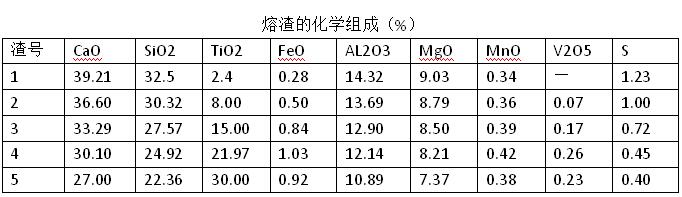 TiO2含量達到30%左右時,由于熔渣中TiO2含量過高時,熔渣的熔化性溫度升高,熔渣變稠。熔渣粘度提高的根本原因是TiO2在還原過程中產生一系列低價鈦氧化物及TiC、TiN及它們的固溶體Ti(C,N)和Ti(N、C)。鈦氧化物還原度增加,熔渣的粘度呈近似指數函數急劇升高。