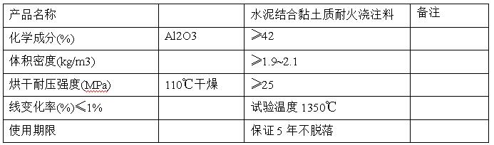 施工方式:由澆注料供貨商設計,保證使用性能。