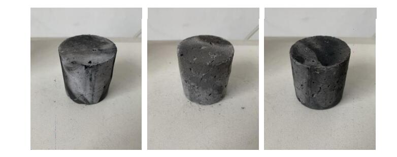 分析認為,不同于純H2還原,在混合氣氛下,耐火材料的受損程度取決于還原反應與滲碳反應的共同作用,耐火材料中的Fe2O3會與H2CO反應,被還原成FeO和單質Fe進一步催化CO發生析碳反應析出碳(2CO(g)CO2(g)+C(s))CO在制品表面及內部(通過氣孔進入)發生歧化反應,產生碳沉積,碳沉積伴隨大量的體積膨脹導致耐火材料的結構受到嚴重破損,進而嚴重影響到耐火材料的相關服役性能。這也是導致含CO還原氣氛下耐火材料性能下降更為明顯的主要原因。如圖所示,還原后的高鋁澆注料試樣出現部分破損開裂的現象也證實了這一點