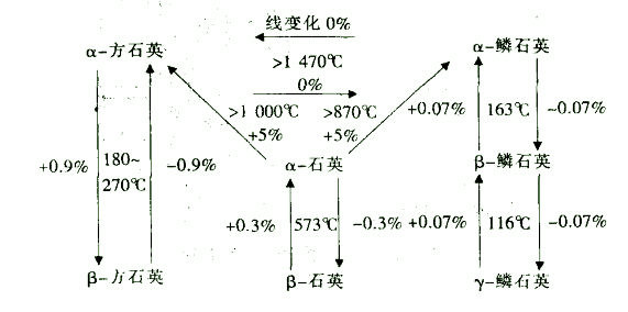 以提高隔熱硅磚的性能(特別是高溫下其各種晶型轉變)為原則,應用與隔熱硅磚的生產。SiO2以一些晶體形式和非晶形態存在。通常可辨別SiO28個晶型。不同晶型的性能和SiO2轉變所引起的體積變化,以及這些轉變發生速度對于生產是很重要的。