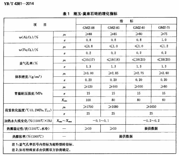 剛玉莫來石磚按主要成分AL2O3含量分別為GMZ-75、GMZ-80、GMZ-85、和GMZ-88四個牌號。牌號中G、M、Z分貝為剛、莫、磚、的漢語拼音首字母。數字部分表示氧化鋁含量的質量百分數。
