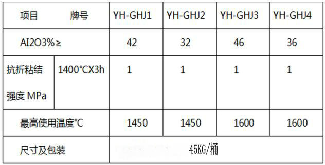 高溫粘結劑分氣硬性和熱硬性兩大類,每一種材質分輕質和重質。根據砌筑制品材料的要求,選用相應材質的高溫粘結劑。該粘結劑具有結合輕度高,抗侵蝕性好,砌筑灰縫小,砌筑整體結構好,施工方便等特點。